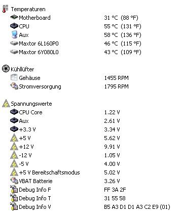 Der Arctic Cooling 64er hat mich auch nur 7 Euro noch was gekostet! Was ich grad sehe, sind die Werte deines Netzteils! Der Wert auf der 12V Schiene ist katastrophal, hast du dir auch ein neues Netzteil zum PC gekauft? Scheinbar nicht...Das könnte - evtl. - das Problem sein. Läuft der PC denn stabil? Auch in Games?