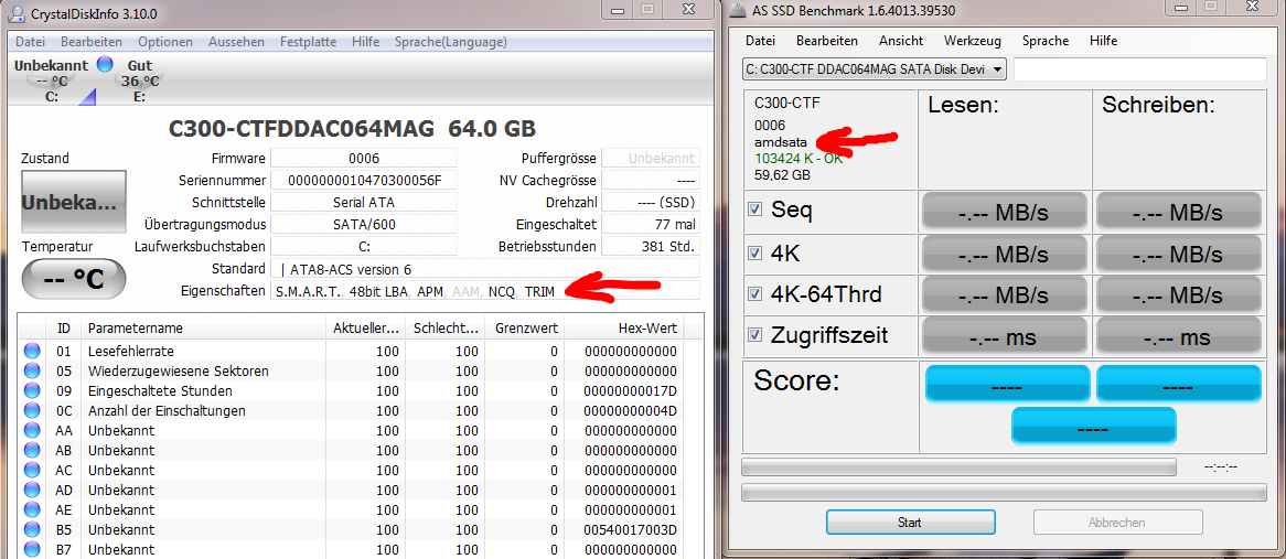 Habe mit dem Tool AS SSD Bench gesehn das ich den amd_sata treiber nutze.