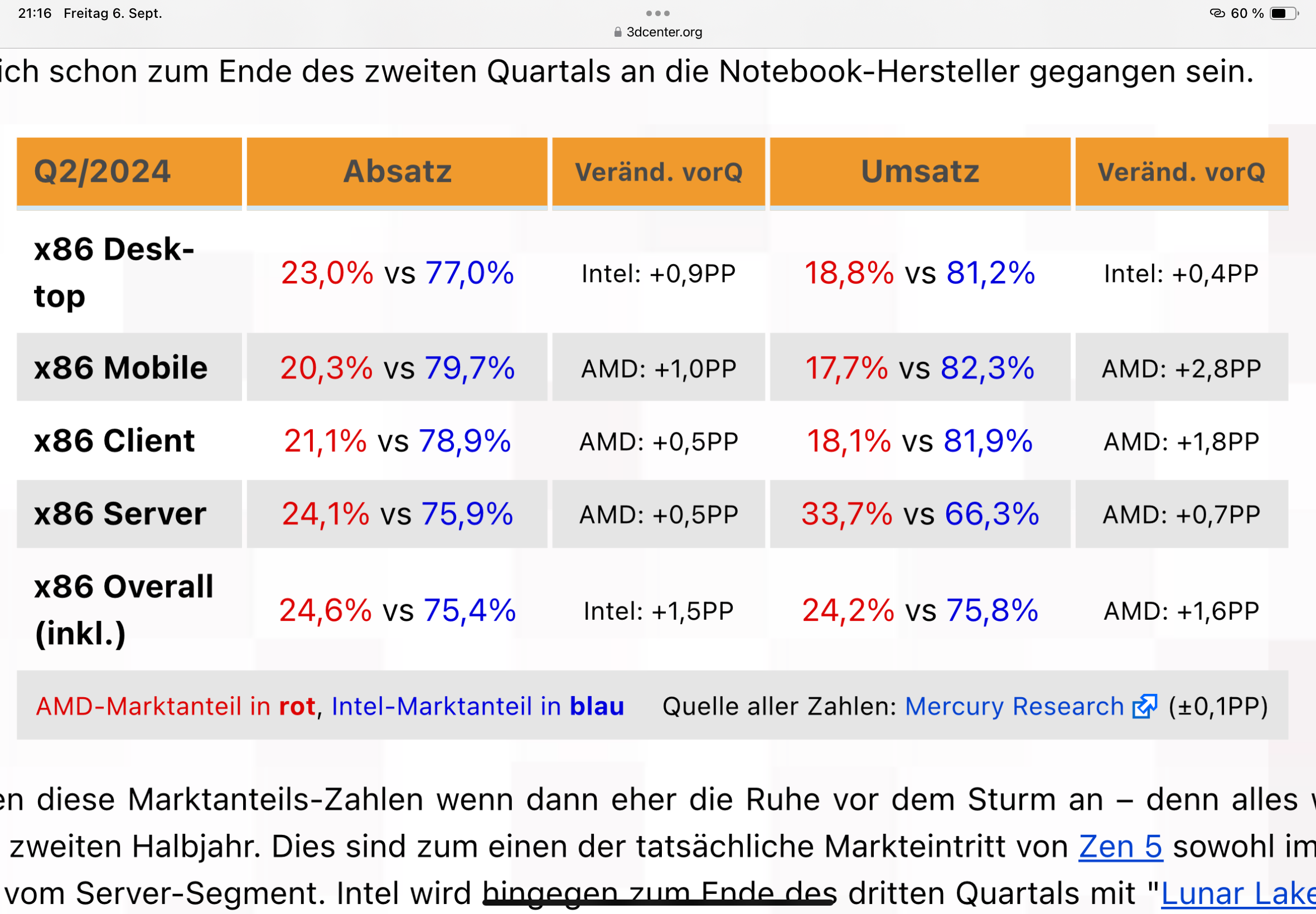 Ich denke nicht das AMD noch wirklich hat, das mag bis mitte 2021 wohl so gewesen sein, ab 2h/23 sind die Marktanteile bei den NB aber von 20 auf 24,8% bei den NB gestiegen, dann kam die Kriese und Intel hat mit Dumpingpreisen die Marktanteile wieder zurückgeholt dafür fett Marge gelassen, AMD hat die Marge aber fast gehalten und nur beim Umsatz extrem eingebüsst. AMD positioniert sich für das Wachstum ab 2025, aktuell steht Hawk vs Raptor/Mentor Strix Point vs Luna Lake, andere Leistungsklasse aber nicht wirklich teurer, Kraken als Luna Konter kommt erst 25 Fire Range als arrow/Panther Lake Konter ebenso.