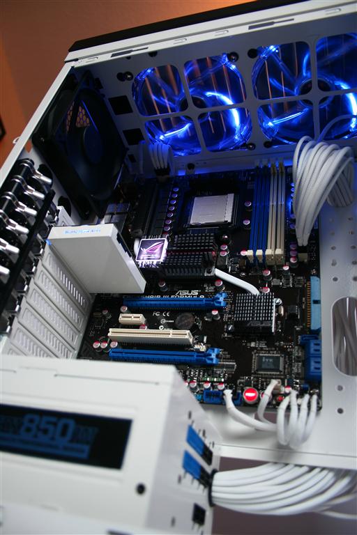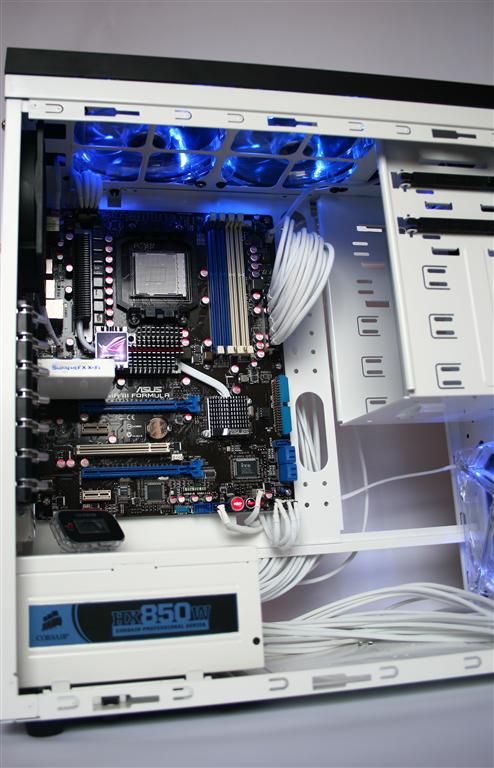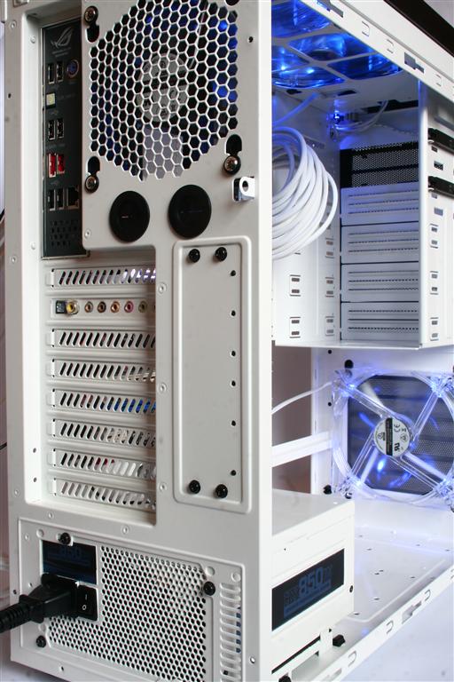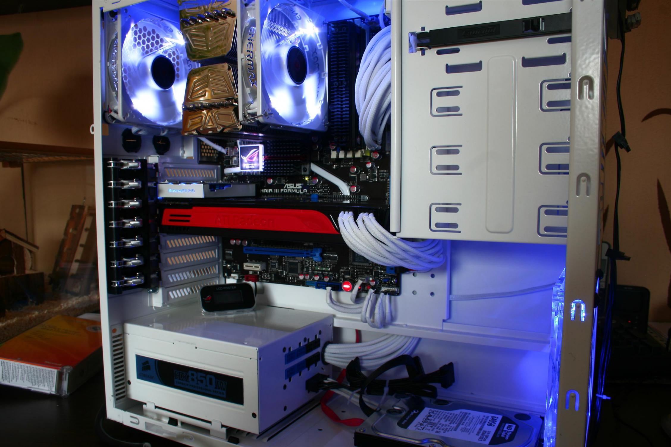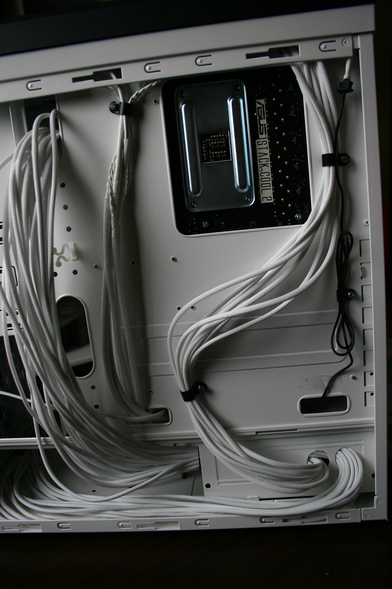 Alle Kabel (ATX, EATX und 6/8Pin) gesleevt und NT lackiert (natürlich in Weiß!!!, gleichzeitig habe ich noch Löcher ausgesägt, damit ich die Kabel anders verlegen kann.