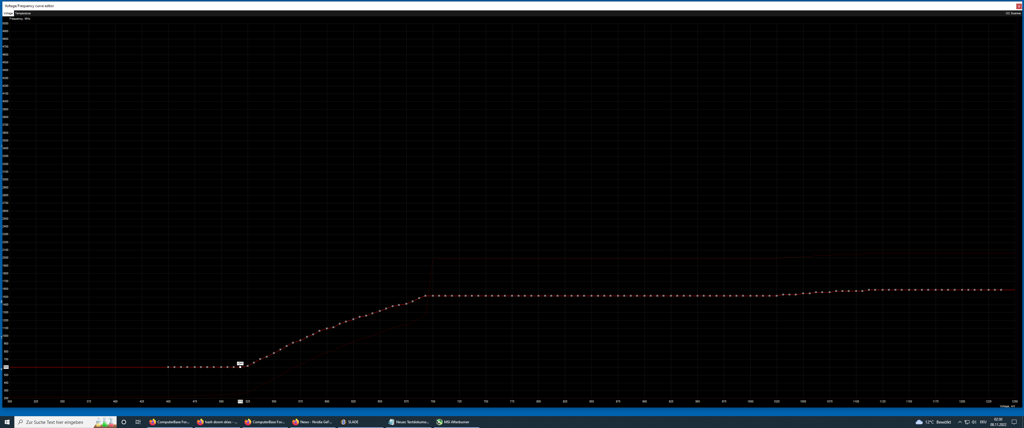 Aber die einzelnen Punkte lassen sich bis runter auf 0.756V einzeln bei +200mhz betreiben. Naja, weil die Curve halt echt kacke so aussieht, hab ich diesmal wenigstens Global +90mhz reingebuttert.