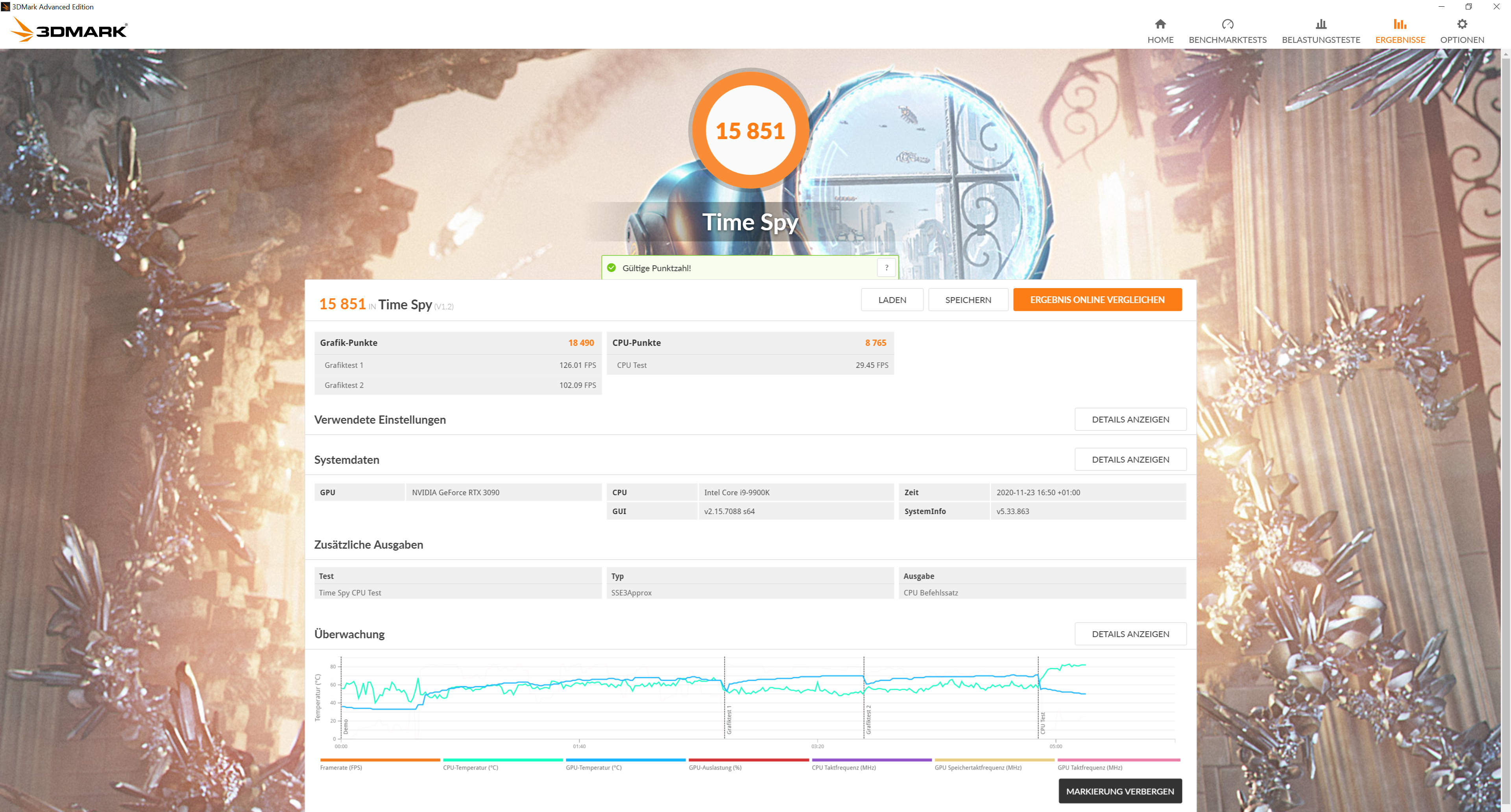 meine 3090 evga ftw3 ultra gaming ist letzte woche gekommen und ich würde gerne wissen ob der chip schlecht, normal oder gut ist. ich hab mir 3d mark runtergeladen und durchlaufen lassen, hier sind die ergebnisse: