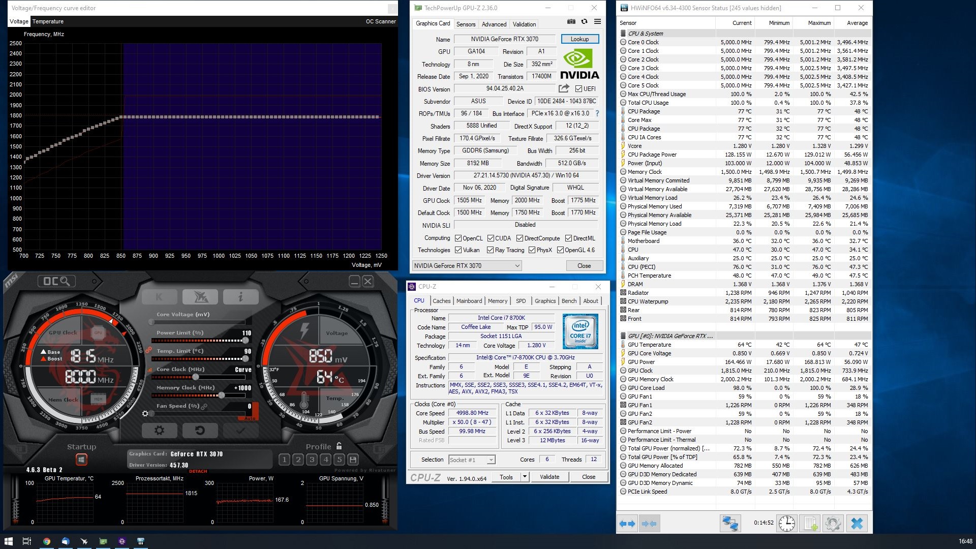 Bis jetzt eben so meine Erfahrung, dass Teil unter Belastung zwar einstellen und kucken das es stabil ist, aber nach einem kalten Systemstart die Settings nochmal übernehmen und beachten das diese im Game dann nochmal 15-30mhz nach oben verschieben, so bleibt zumindest bei mir die Kurve bis jetzt immer wie abgespeichert drin.