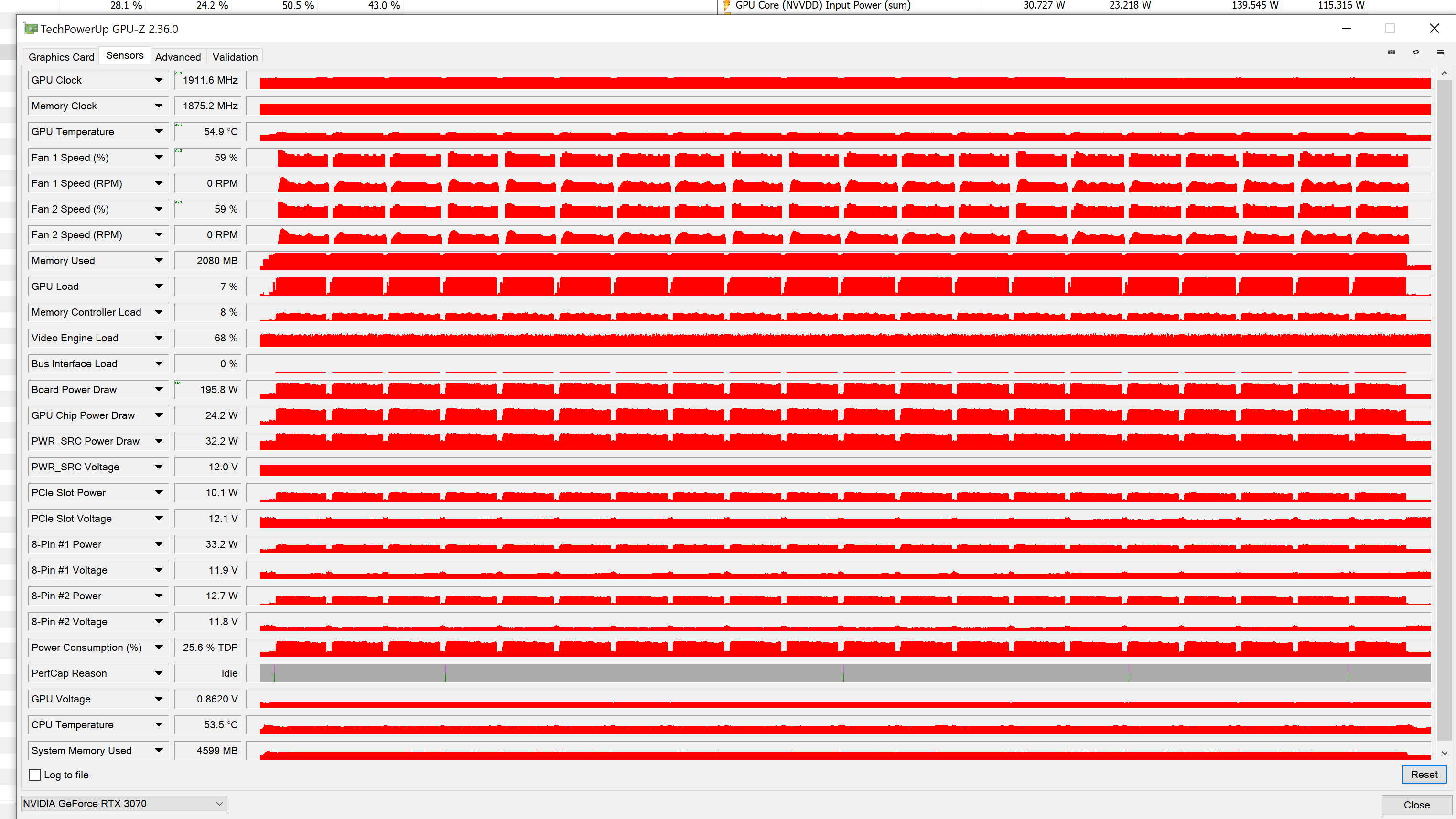 Die Grafikkarte taktet in der Regel immer +15Mhz drauf. Das heisst, wenn mein Ziel 1860Mhz bei 0,85V sind, muss ich 1845Mhz bei 0,85V einstellen, damit Ingame 1860Mhz getaktet wird. Meine Grafikkarte hatte nämlich oft bei 1860Mhz bis 1875Mhz-1890Mhz getaktet, was ja nicht mein Ziel ist. Auch hat MSI Afterburner die Kurve (curve editor) oft nachkorrigiert, also statt 1860Mhz stand da 1875Mhz.