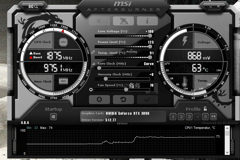 Dank der Copper Shims kommt der VRAM auch beim Mining nicht über 80 Grad selbst bei den Aktuellen Temperaturen. (Lüfter in der Mitte 70% außen die zwei 65%).