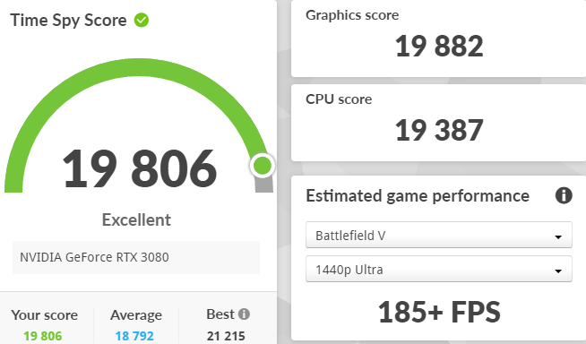 Bei meiner 10 GB Variante ist das Average vom 3D-Mark bei