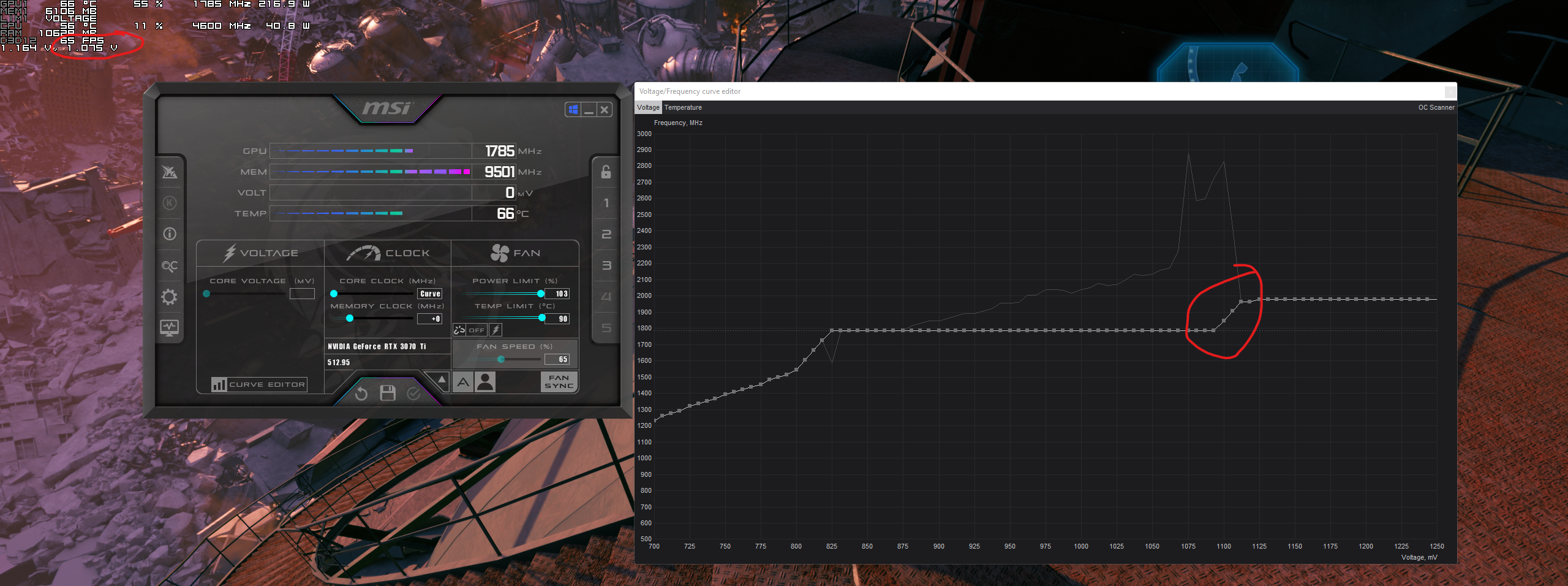 Ich betreibe meine 3070ti auf 0.825v @ 1755mhz. Allerdings hatte ich Spannung immer mit "L" gelockt. Ich würde es aber gerne wieder freischalten, dass die auch mal runtertaktet, wenn die Leistung nicht benötigt wird. Jetzt hab ich das Problem dass ich zwar die Kurve gerade bekomme aber nicht ab 1.06X v.