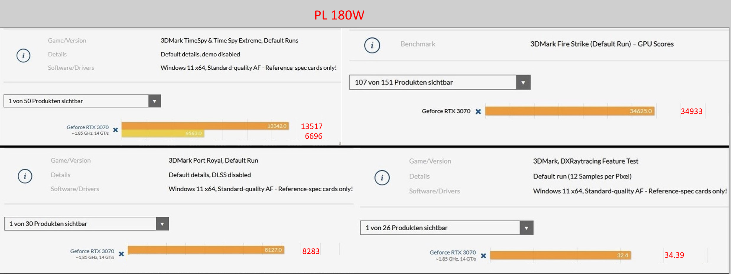PCGH hat ja erst kürzlich wieder den 3DMARK getestet und ich meine auf 180W PL Karte natürlich dagegen.