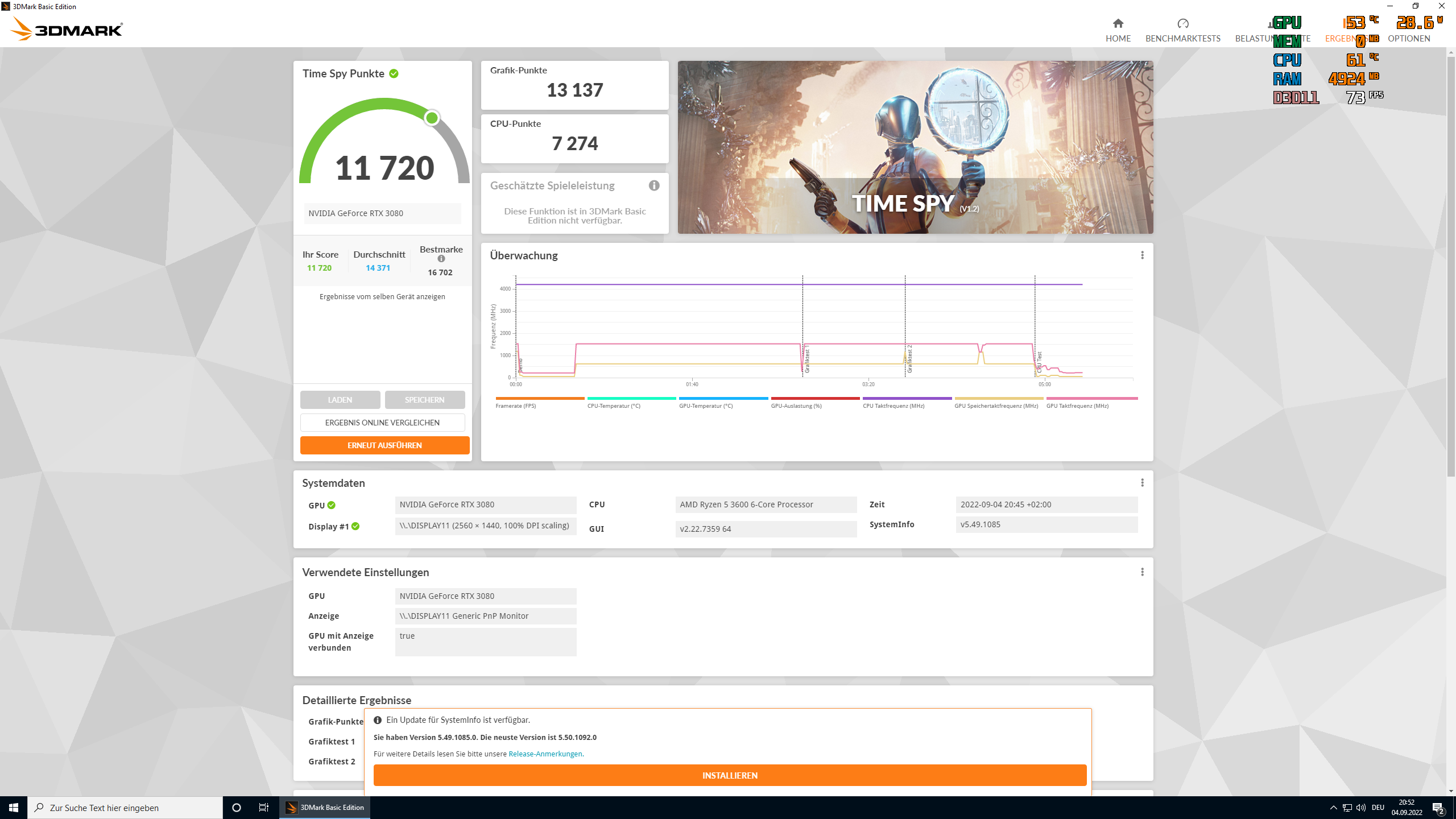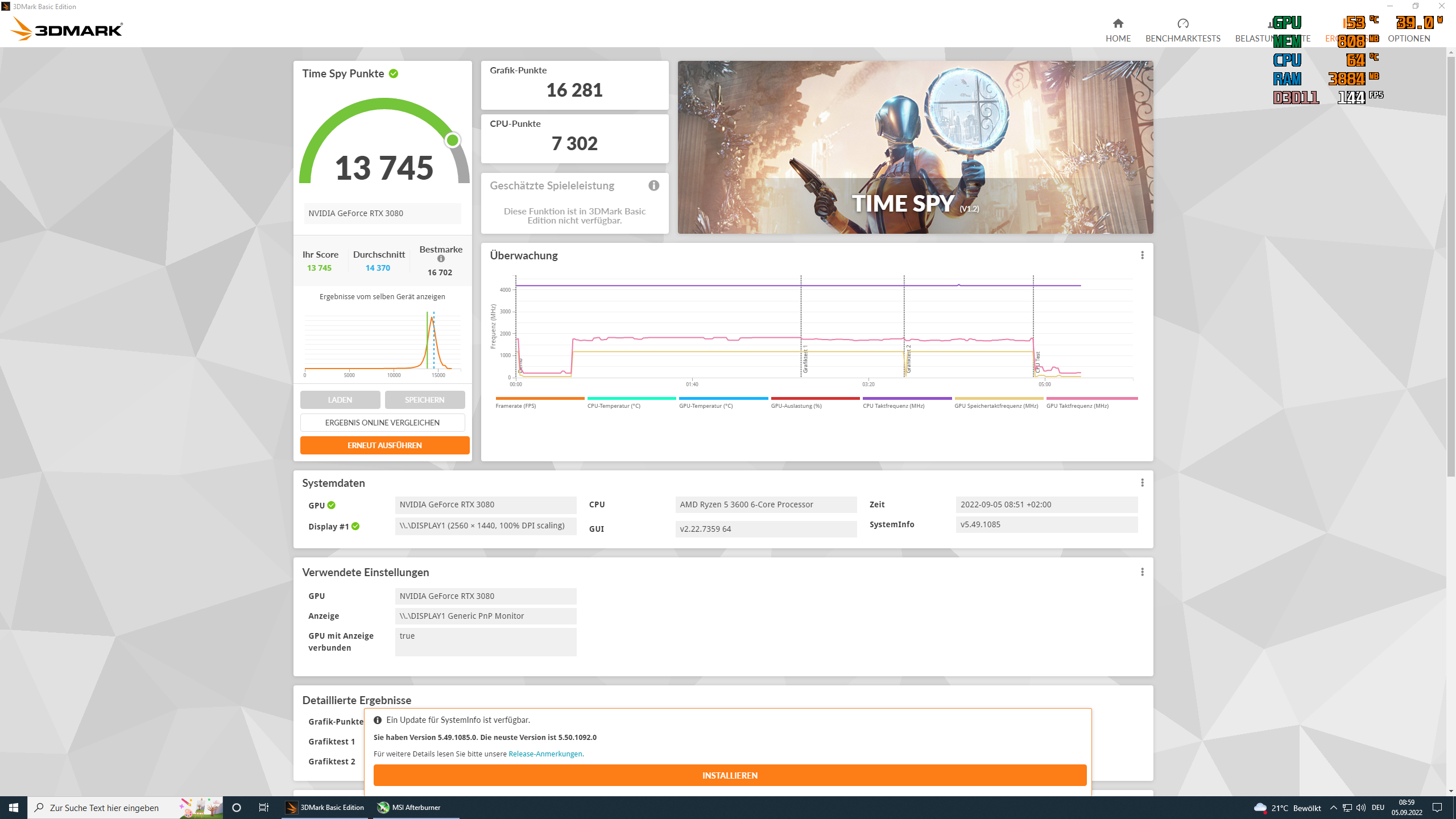 als treiber hatte ich nochmal den 511 draufgezogen (weil ich den auf die schnelle hatte) um nochmal alles auf "werk" zu stellen, weil timespy bei mir mit den LOD settings gemeckert hat, weil die bei mir auf "hohe quali" standen - aber in den geposteten tests ist alles tutti.
