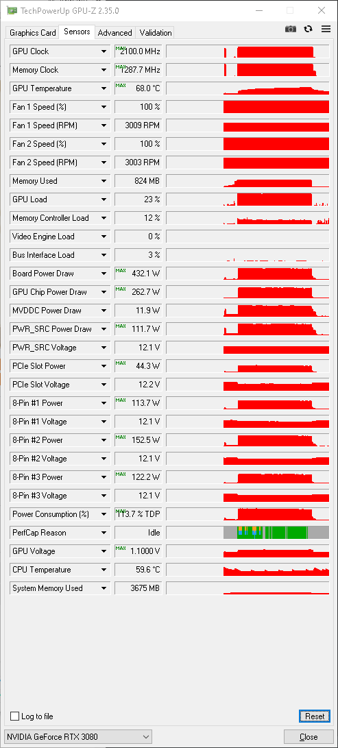 Zudem wurden die Lüfter von Anfgang an auf MAX gestellt (für den Bench only), damit sich die Karte zwischen den Benchs abkühlt, bzw, damit die Lüfter von anfnag an Wärme abtransportieren,