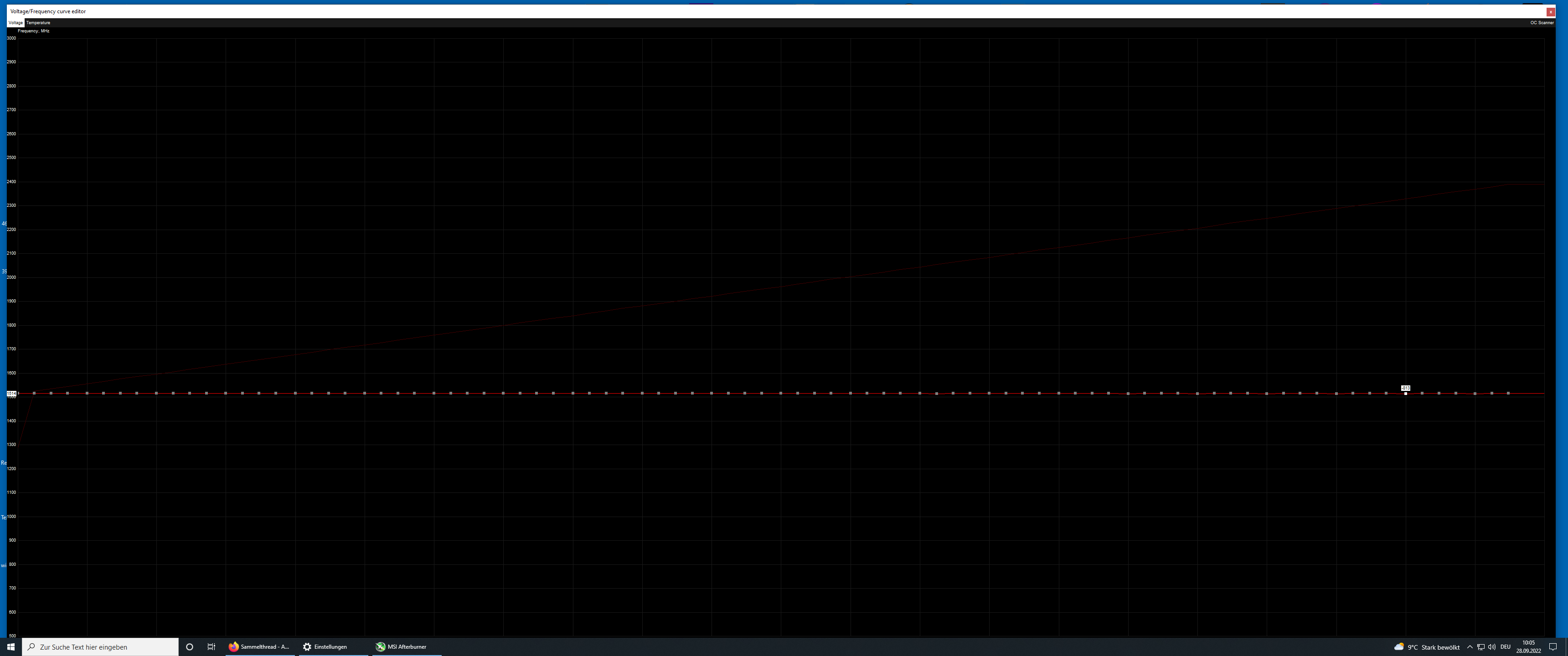 Wenn ich jetzt Bock hätte weiterzumachen, an welcher Zahl würde man jetzt ansetzen? Die 1860 erstmal so lassen und gucken, ob man auch mit 0,9v hinkommt? Also zum anfangen, mir ist schon klar, dass das Optimum wäre, die beiden Werte so niedrig bzw. so hoch wie möglich auszureizen, bis beides miteinander hinhaut.