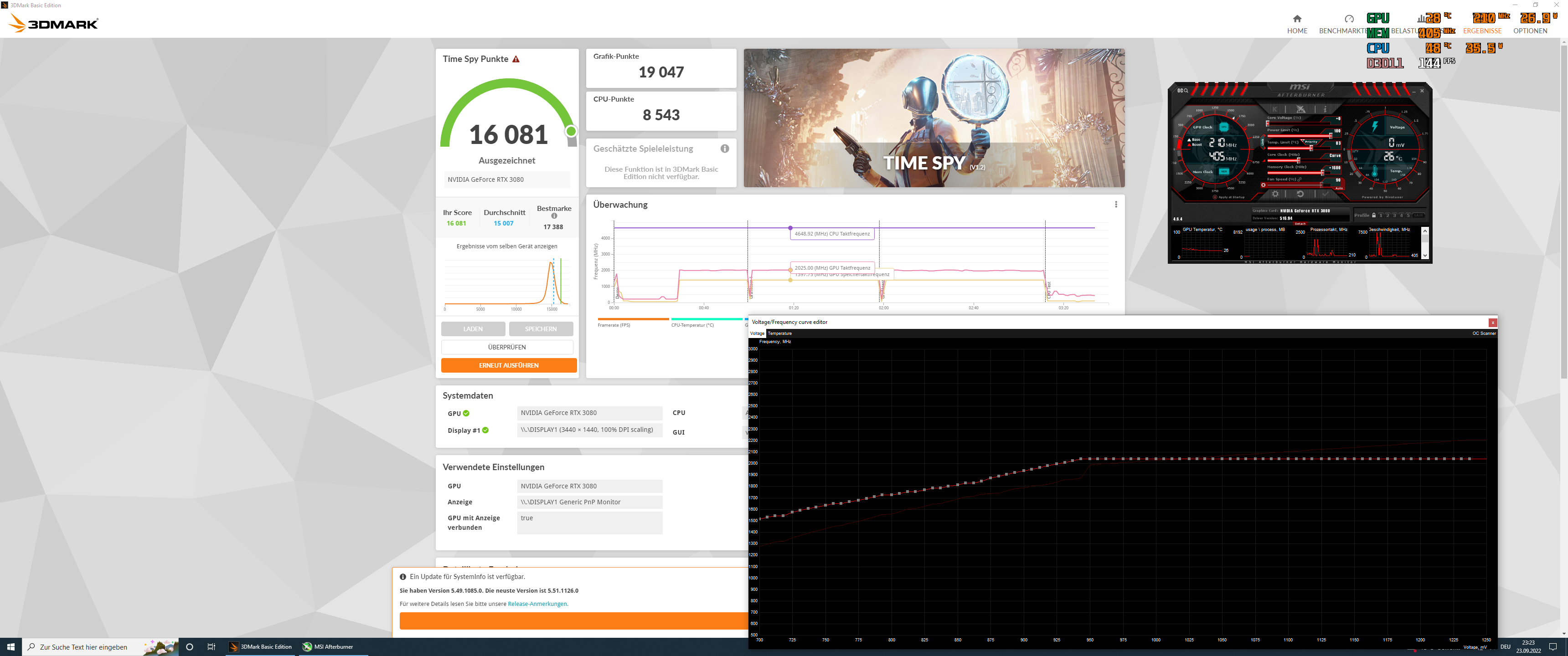 die TIME Spy Ergebnisse mit dem 180w Profil (minimaltakt, halbierter VRAMtakt) sehr schlecht waren