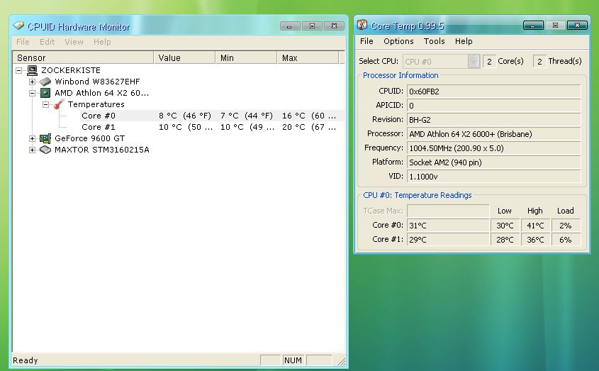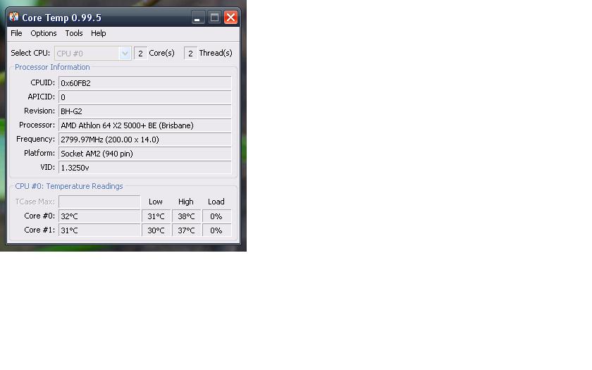 wenn ihr wie ich auch zu denjenigen gehört, bei denen die CPU Kerntemperatur falsch ausgelesen wird, ladet euch mal Core Temp 0.99.5 Beta 2 ( Build 20 ).