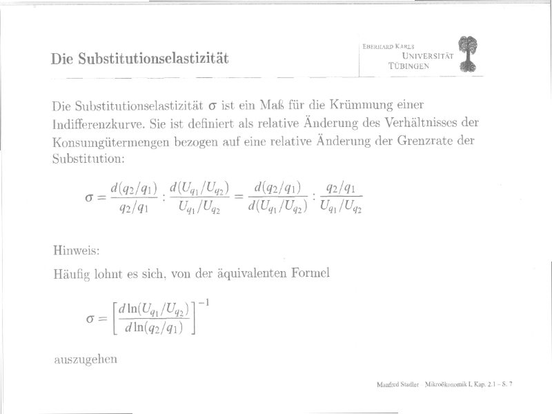 2)Die Substitutionselastizität gibt mir auch Rätsel auf... dieses verfluchte "d"... ist das jetzt die Differenz oder die Ableitung? Wie handhabe ich das? Kann ich das einfach rauskürzen?