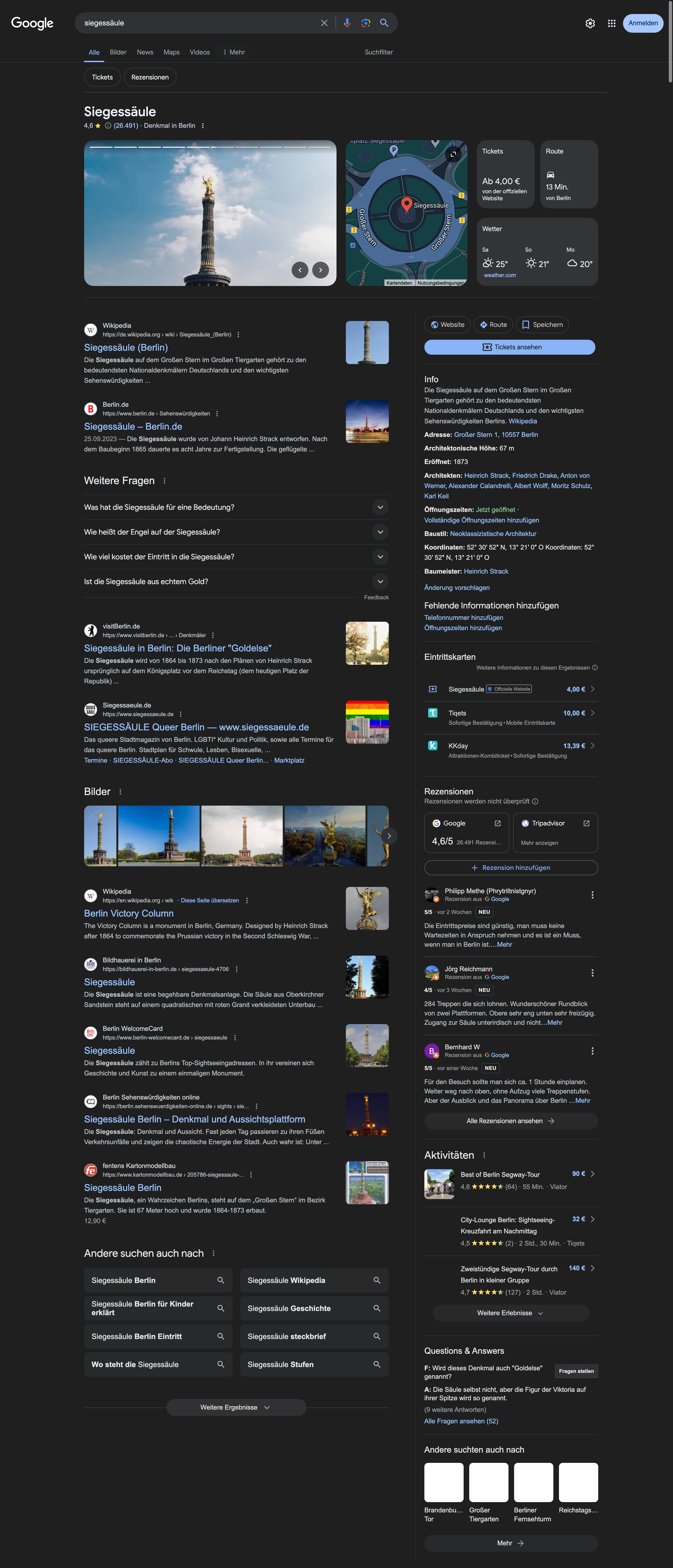 ich habe das Problem, dass die Google-Ergebnisseite völlig anders aussieht, wenn ich eingeloggt bin, als wenn ich nicht eingeloggt bin. Die Darstellung im eingeloggten Zustand ist einfach ... schlecht. Man sieht z.B. die Karte oben rechts, kann sie aber nicht anklicken. Auch in der Navigation fehlt der Eintrag „Google Maps“ und auch andere Elemente wie z. B. Wetter, sind einfach nicht sichtbar.
