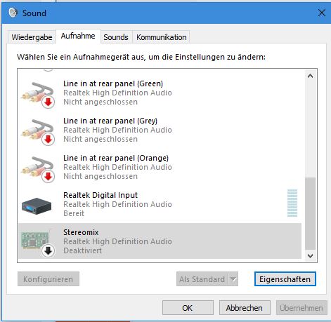 Ich habe in "Sound" alles deaktiviert, außer die Ausgabe und Eingabe meiner Soundkarte, doch es brachte nichts. (Besonders der "Stereomix" ist auf komplett leise und deaktiviert).