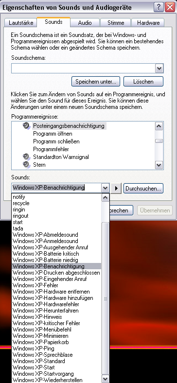 kann man bei Outlook Express den Sound bei Nachrichteneingang irgendwie ändern? Hab keine Pfadangabe gefunden wo man Sounddateien anwählen kann.