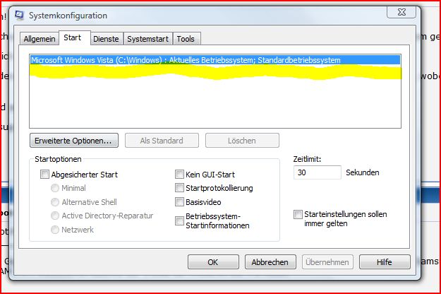 Wenn ich jetzt den Computer hochfahre, fragt er mich jedes Mal, welches Betriebssystem ich starten möchte, wobei ich die Wahl habe zwischen "Vista" und "Vista"