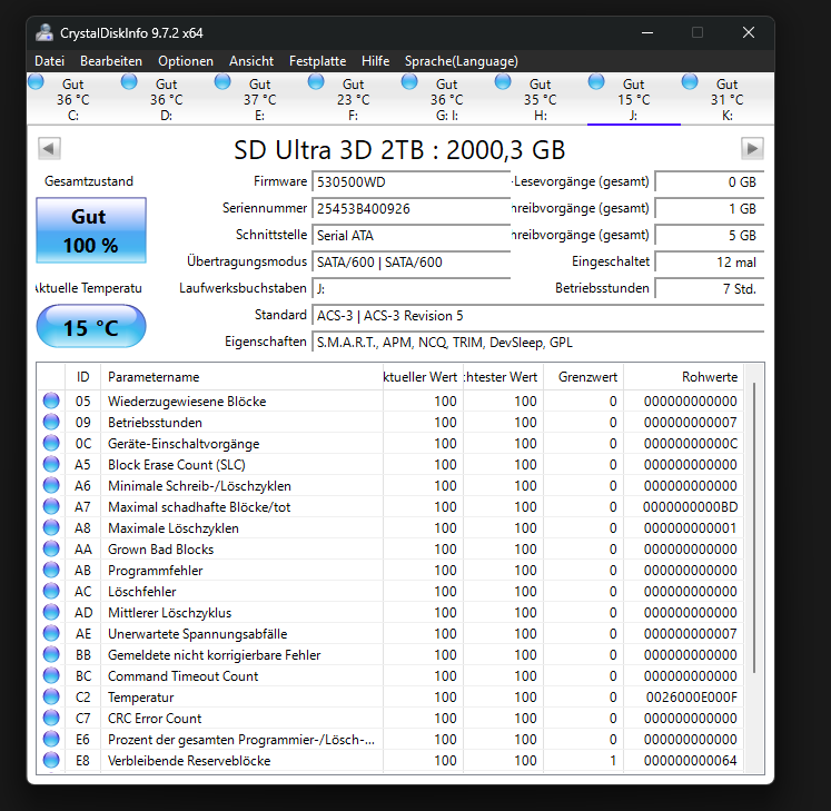 Vergleiche doch mal mit den Temperaduren der anderen 7(?) Datenträger. Die haben fast alle etwa 35° Grad, da kommen einem die 15 Grad der (Fake) SanDisk unglaubwürdig vor.