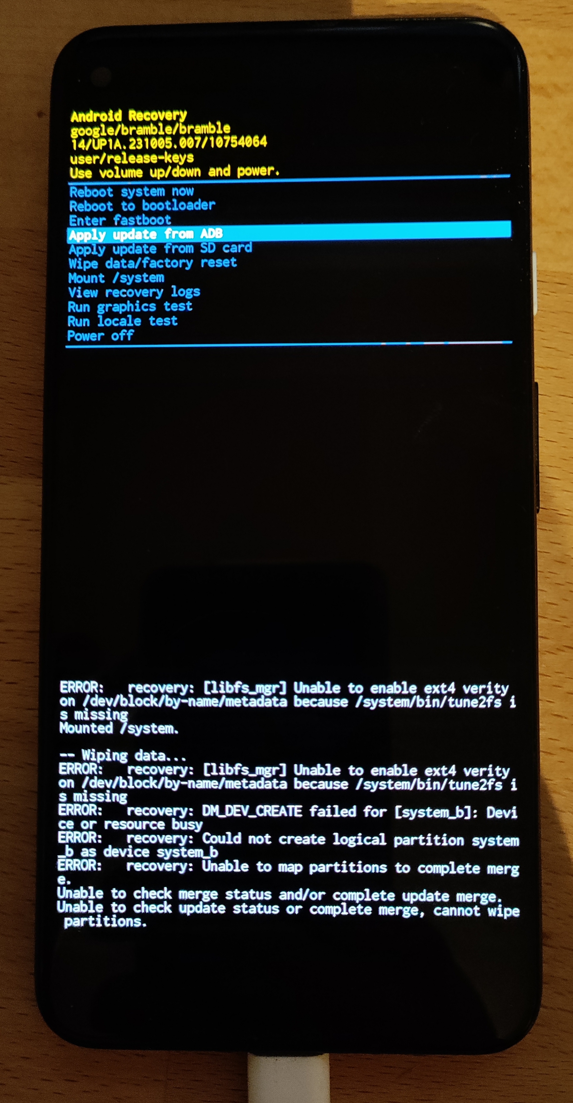 fastboot -w update image-bramble-up1a.231005.007.zip