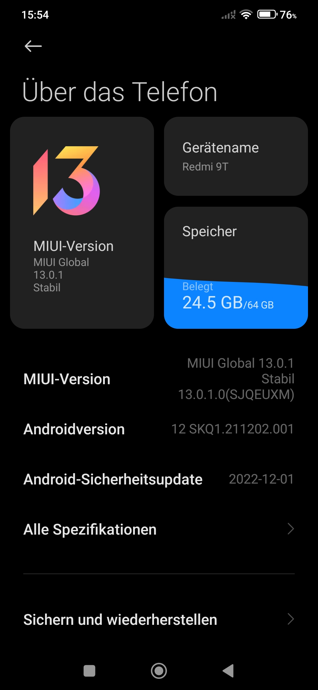 Für mein Xiaomi Note 9 Pro gab's gestern Android 12 mit dem MIUI 13.0.2.0 inkl. Sicherheitspatch vom 01.10.2022.....wow.......besser wie nix.