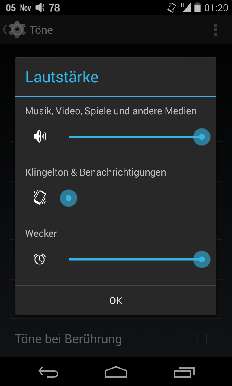 Was hast du für ein Gerät? Auf meinem Nexus 4 mit Kitkat sehe ich keine Möglichkeit einen Haken reinzusetzen oder zu entfernen. Nur beide Töne mittels Balken einzustellen. Meines Wissens nach wurde das ab Jelly Bean entfernt weil das System intern geändert wurde.
