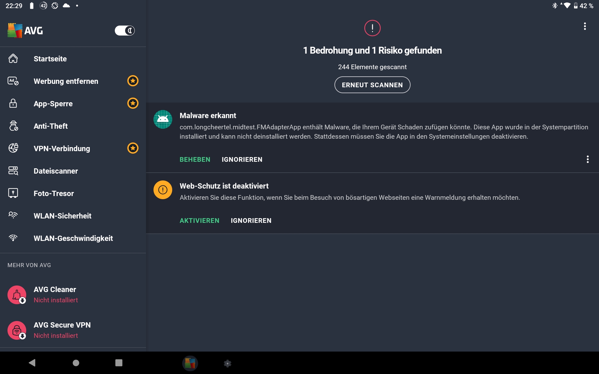 Gestern Abend überraschte mich die Anti-Viren-Software AVG auf meinem Tablet (Lenovo) mit einem angeblichen Malware-Fund.
