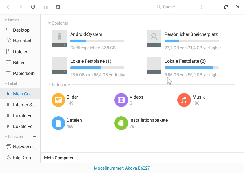 1 war ein Medion Akoya e6227 4gb ram 1,8ghz 128gb ssd 32gb phönix os und windows 10 rest plate dualboot