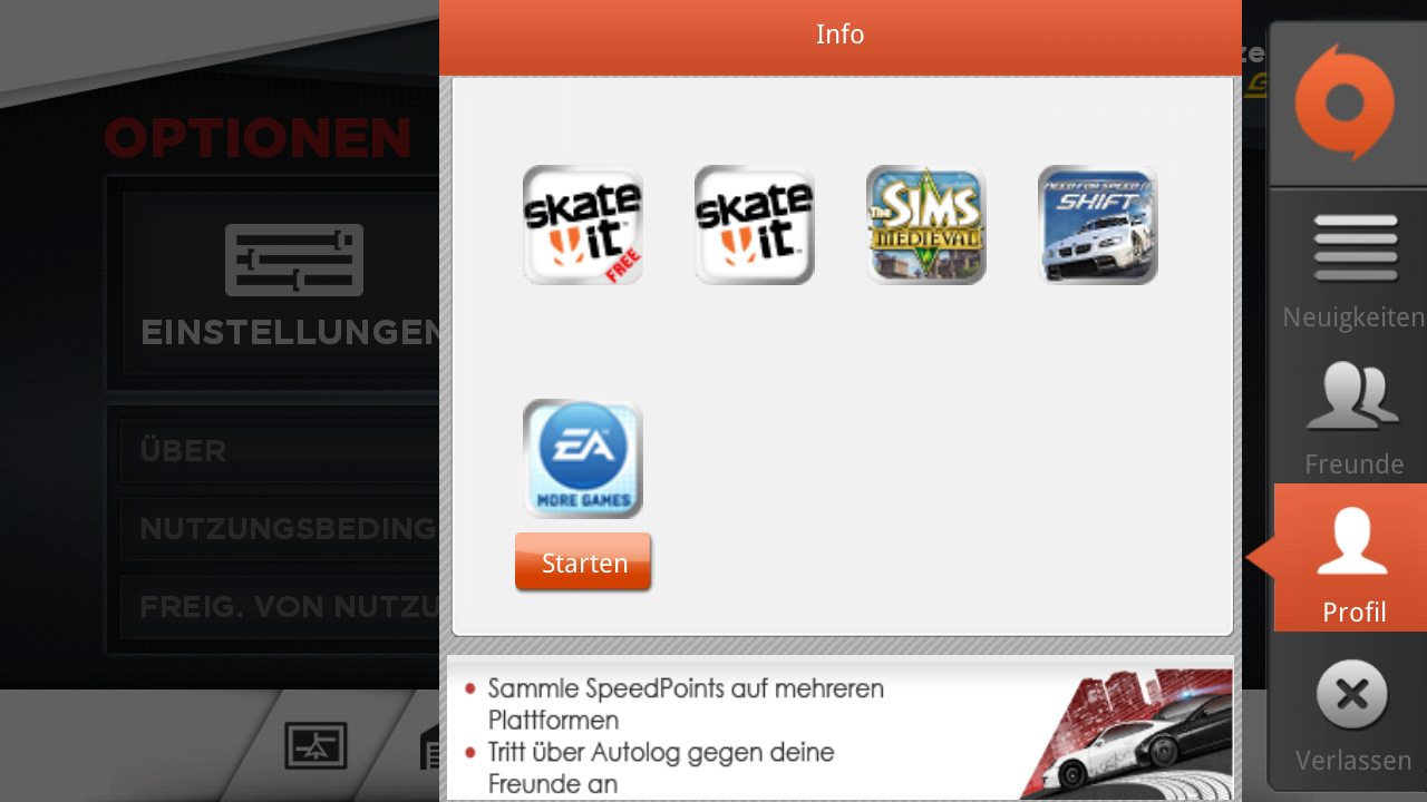 Ich habe im normalen Google-Play-Store NFS: Most Wanted gekauft und auf mein Galaxy S3 geladen. Das dann gestartet und bei Origin angemeldet. Zu meiner Überraschung zeigte er mir dann Spiele an, die ich früher mal auf meinem iPhone4 hatte. Keine Ahnung, woher das S3 das weiß