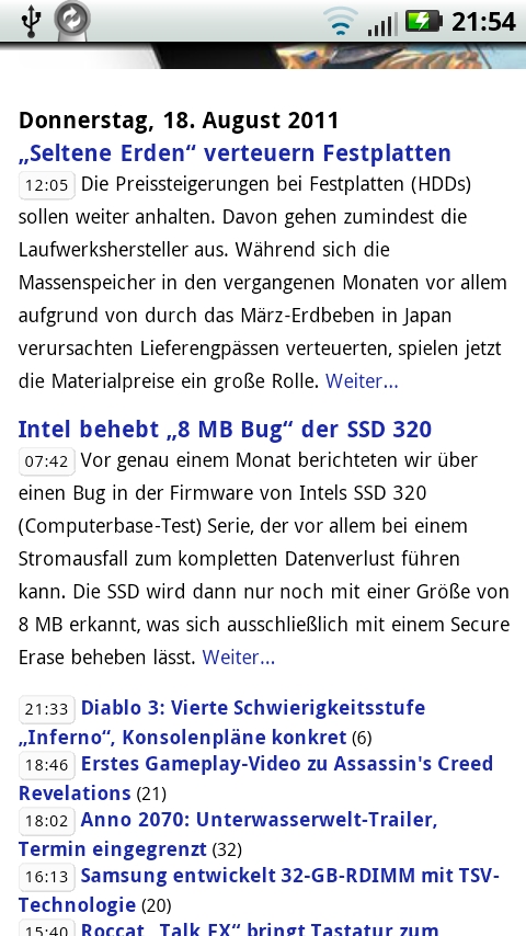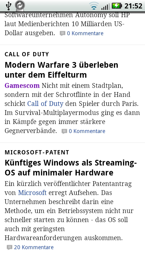 meinte nicht die 4 artikel drunter sondern den haupt artikel, der ist bei dir ja abgeschnitten (und das passiert hier auf dem x10 genauso)morphium schrieb:ich sehe den unterschied, bin ja nicht blind... ich kann allerdings auch direkt das lesen was ich vergrößert habe... und wenn ich zwei artikel lesen will, benutze ich meinen finger und wische... dafür hat man doch einen touchscreen...