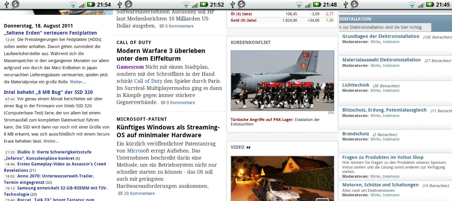 Ich glaube, ich weiß was du meinst. Du hast eine komplette echte Seite, keine Mobilversion, und Doppeltippst irgendwo rein. Es soll sinnvoll gezoomt werden. Deine vier Beispiele habe ich mit einem Motorola Defy ausprobiert. Bei CB, Golem und Spiegel werde ich eigentlich zuerst auf eine für Telefone optimierte Seite geleitet. Aber hier für die Diskussion die Bilder. Das Motorola scheint besser als das HTC zu Zoomen. Tipp Tipp: