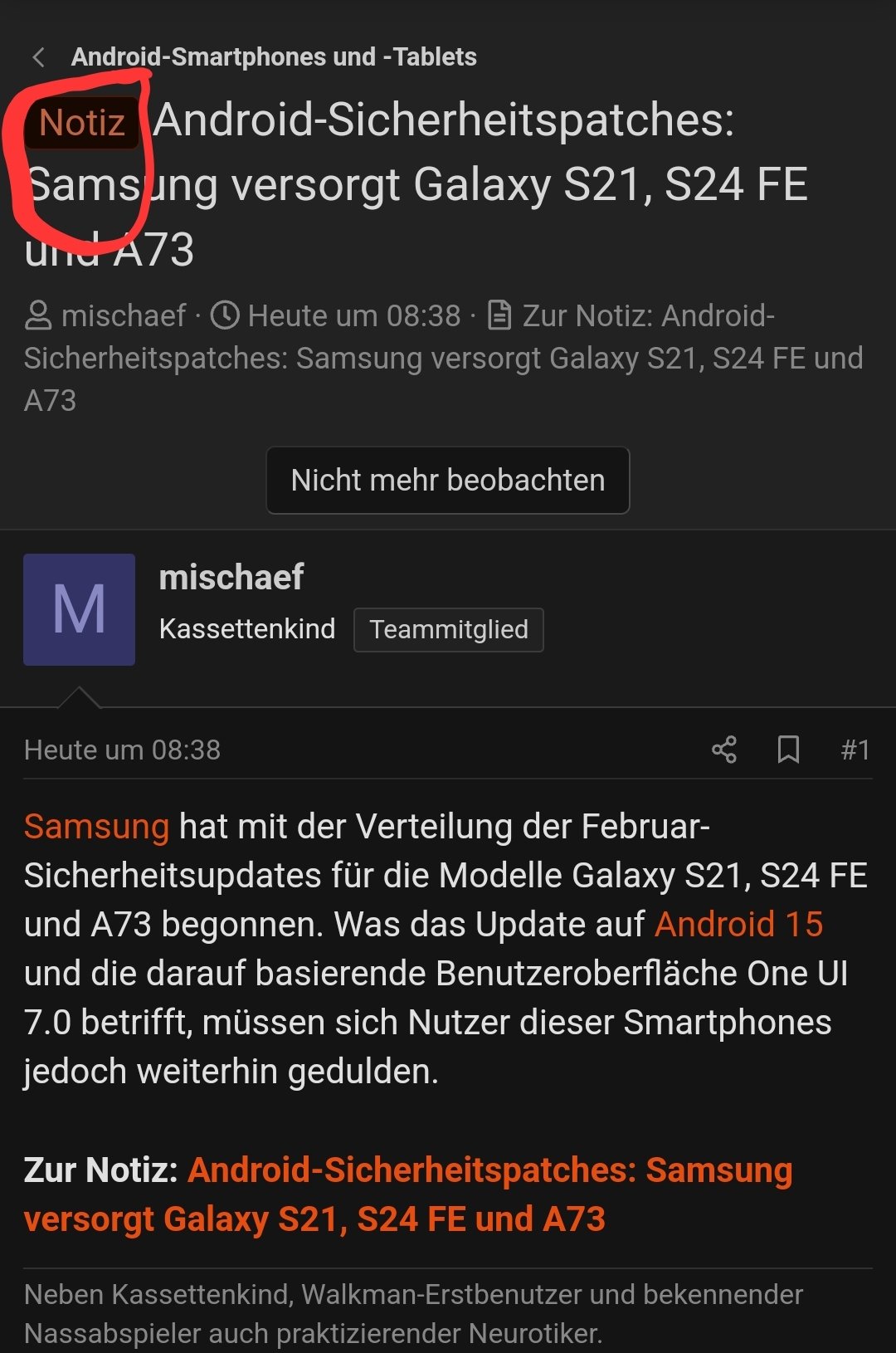 Ich war auch etwas irritiert über diese News, da es Android Sicherheitsupdates ja jeden Monat gibt und es ja nicht jeden Monat eine News gibt. Im News-Text dann selbst ist noch eine andere Nachricht "versteckt" - das Update auf Android 15 verzögert sich für einige Geräte. Soviel ich weiß, gab es dafür aber schon eine News?