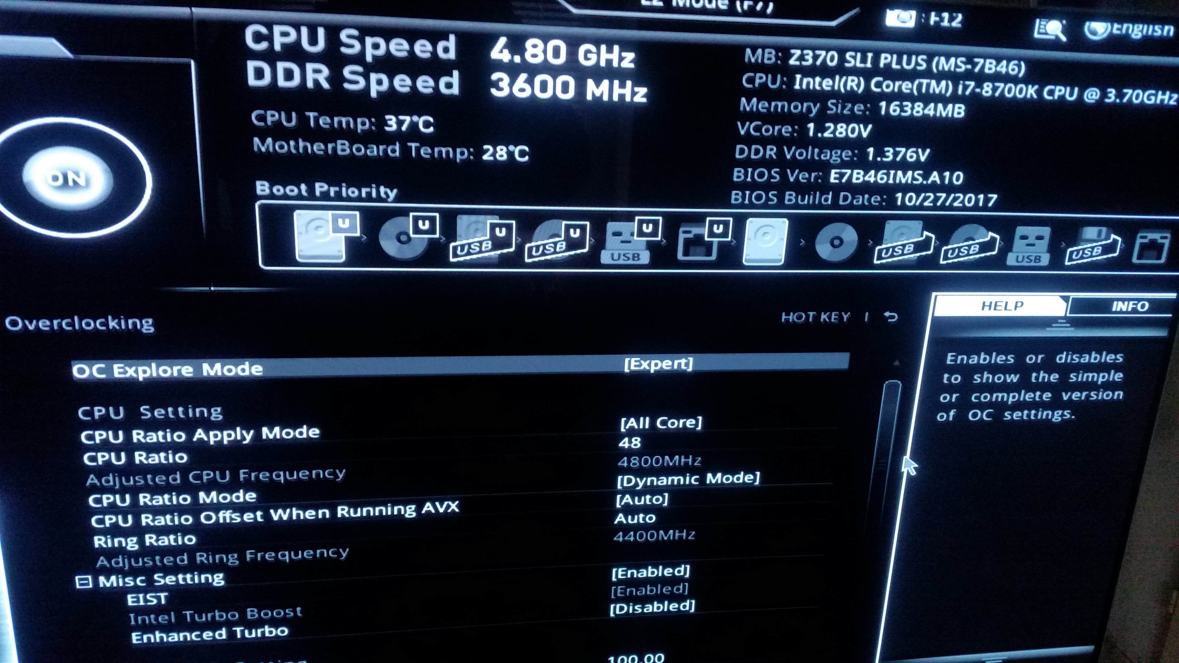 Ich möchte meine 8700K CPU nach diese Youtube Anleitung bis 4,8 Ghz übertakten.