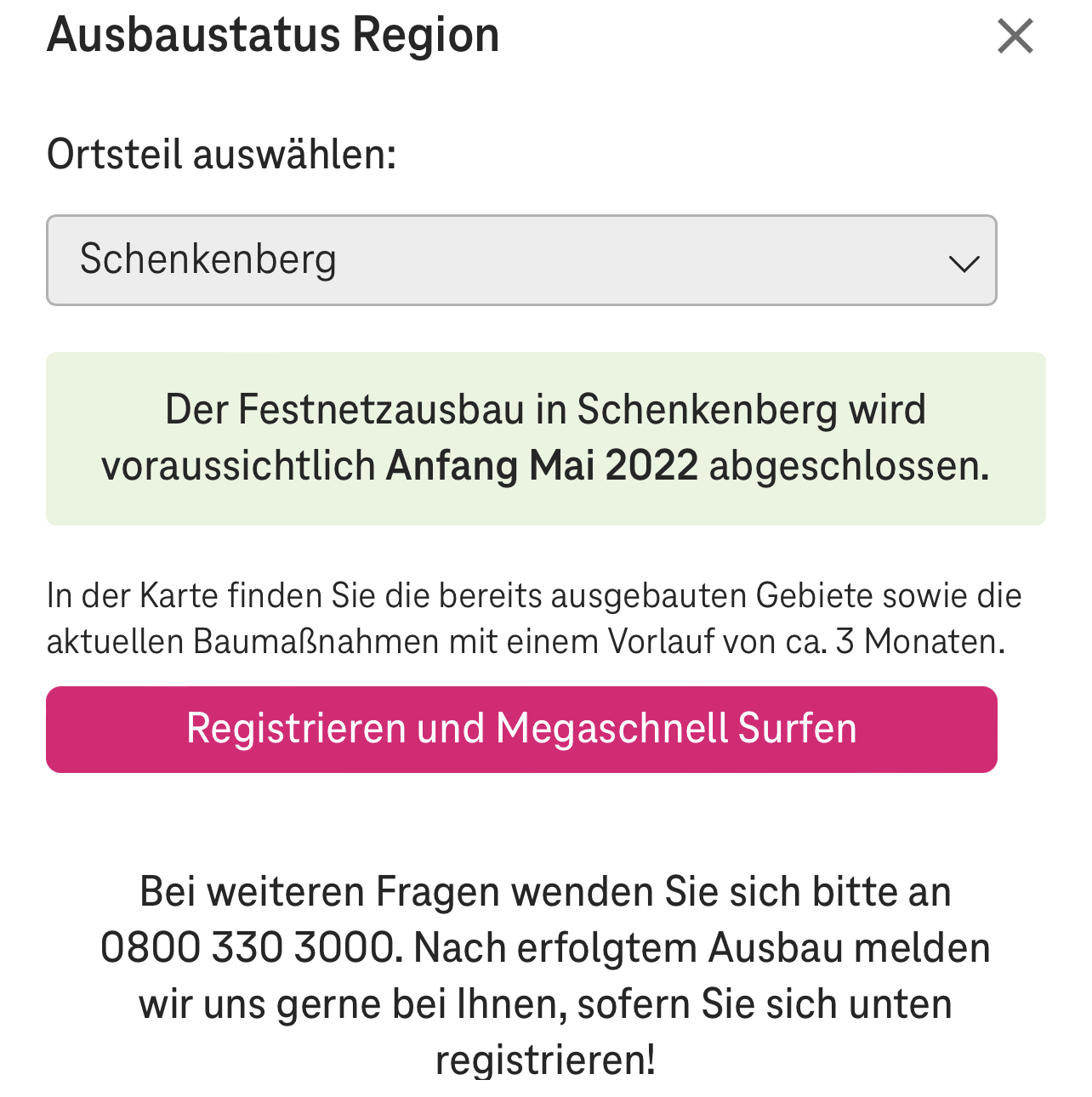 Mich würde es freuen wenn die Ausbaukarte der Telekom besser wäre. Diese ist viel zu optimistisch.