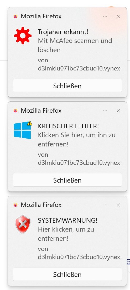seit morgen bekommt mein Dad auf seinem Laptop diese Benachrichtigungen nach einem Virenfund. Windows Defender zeigt nichts an. Die Benachrichtigungen kommen nur über Firefox hoch. Bei anderen Browsern tritt das nicht auf.