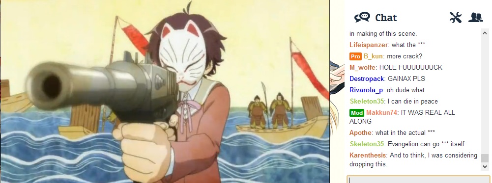 Einerseits hoffe ich, dass das nur eine dumme Ausreißerepisode war, andererseits … würde es mich auch nicht wirklich stören, wenn das die volle Gainax-Schiene runterfährt. Ich bleibe gespannt.