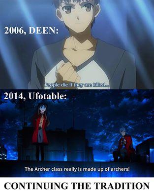 Ich stimme ja zu, dass der Mainchar eine Heulsuse ist, der untere Teil (Ufotable) basiert allerdings auf einer miesen Übersetzung einer Sticheleighecko schrieb:Fate hat mir diese Heulsuse von Hauptchara versaut. Dem seine Sprüche waren teils so Captain Oblious, das er es bis zum Meme geschafft hat.