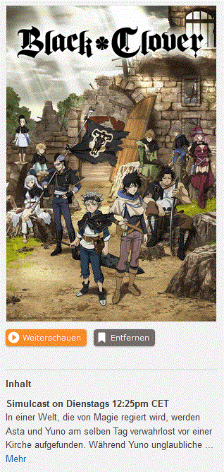 Hab Black Clover iwo bei EP14 gedropt, da wo sie in den Ruinen waren. Wurde mir irgendwie zu offensichtlich, bot zu wenig unterhaltungswert.