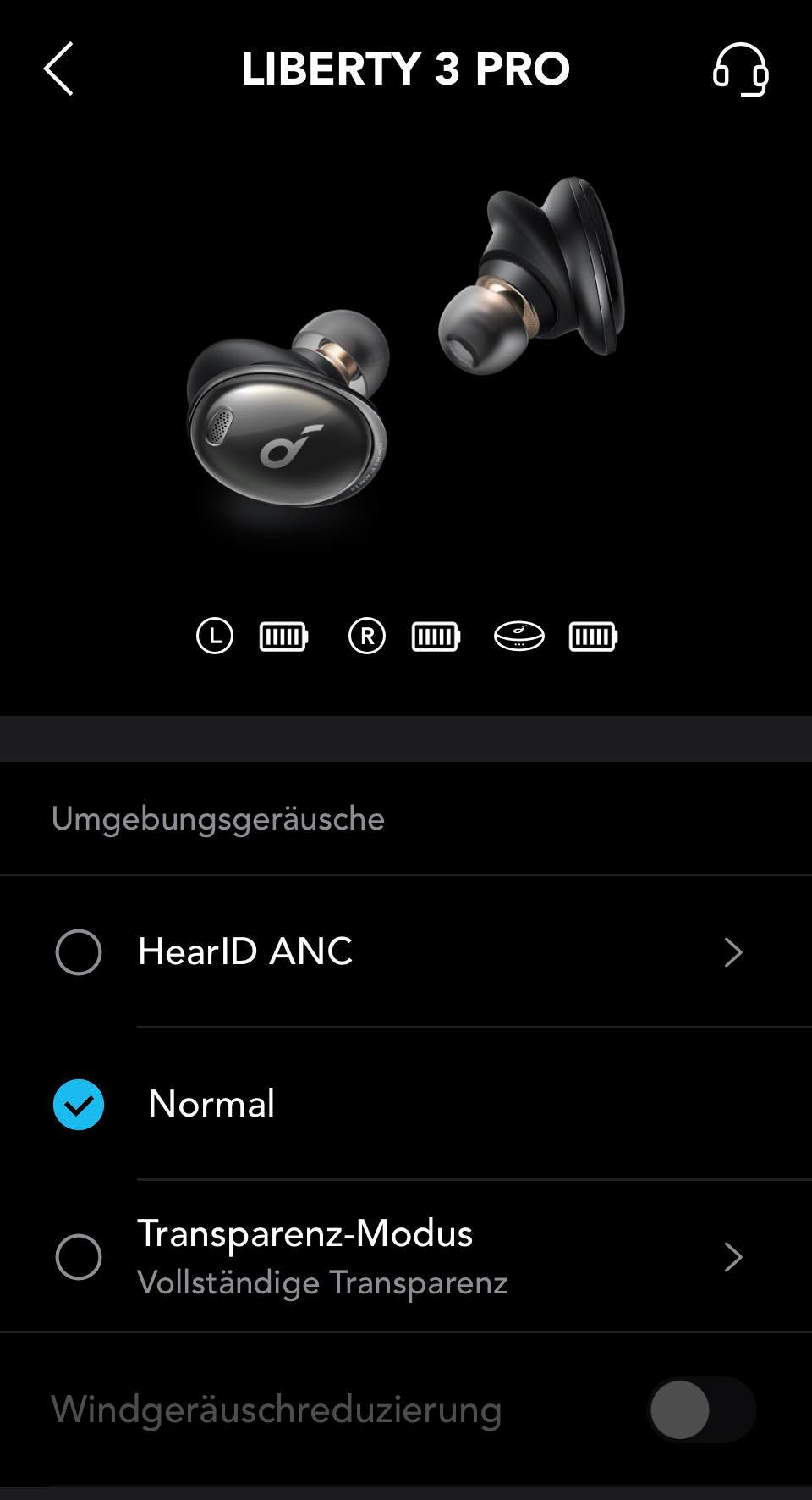Jedoch im Gegensatz zu den Anderen ist der für mich stets benötigte ANC Modus nicht auf "merken" gesetzt, sondern ANC ist mmer inaktiv wenn ich sie aus dem Case hole und neue verbinde d.h. Geräuschmodus Normal ausgewählt.
