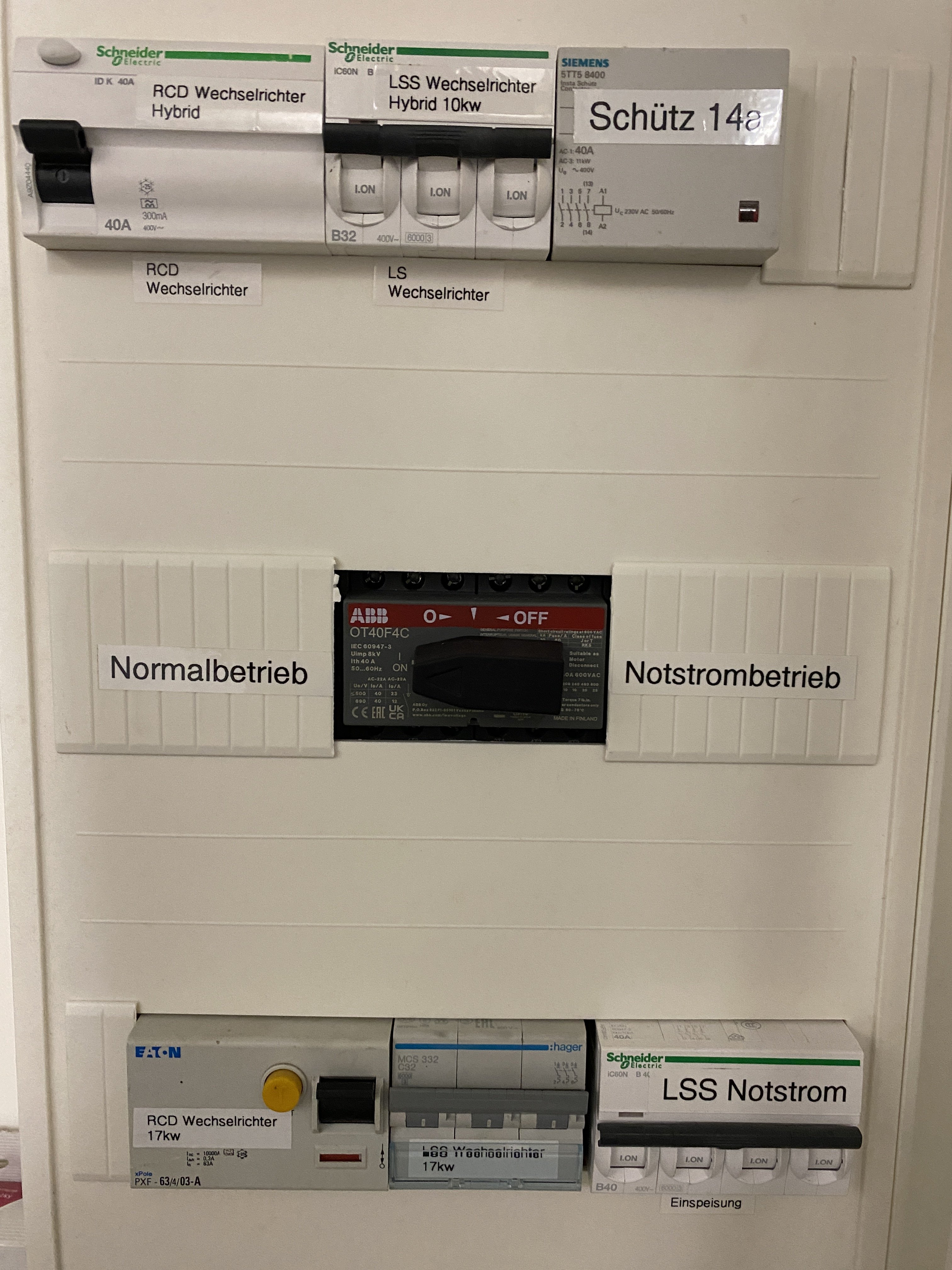 Also bei mir sieht das so aus. Im Notstrombetrieb muss ich erstmal vom Netz trennen und dann aktiv auf Notstrom umstellen. Bei mir spielt das allerdings kaum eine Rolle weil kein PC oder ähnliches läuft. Als Handwerker kann ich im Notfall meine Werkstatt weiter betreiben. Dafür stehen 22kwh Speicher mit 10kw Entladeleistung zur Verfügung. Allerdings habe ich den Notstrom die letzten 5 Jahre nicht benötigt. Wenn sich einer beschwert warum so viele verschiedene Hersteller der Schutzschalter verwendet wurden. Die Anlage ist klein angefangen und immer erweitert worden und teilweise mit Restmaterial von Kundenabriss 😬.