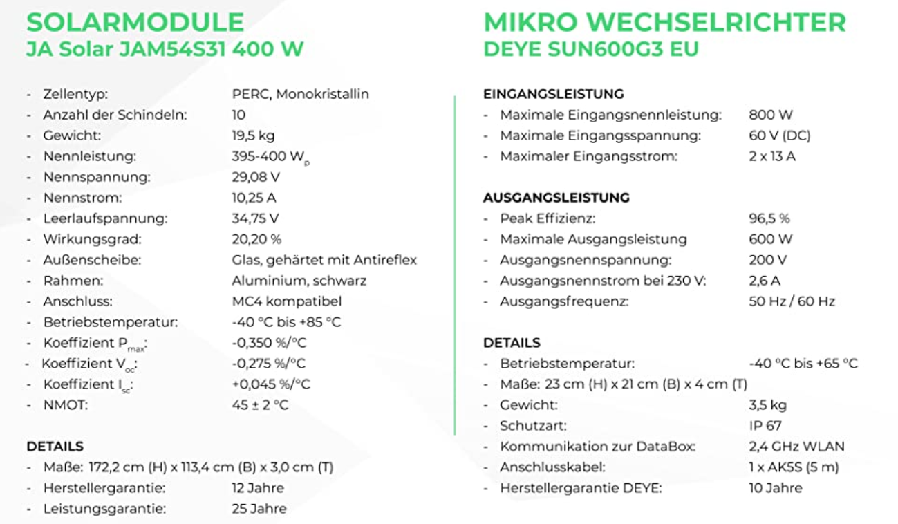 Mein 600 Watt (2x400 Watt Paneele) Balkonkraftwerk läuft jetzt seit 16 Tagen +2 Tage Probebetrieb mit lausiger ausrichtung und habe in diesen Tagen 66kWh produziert. Am schlechtesten tag mit Bewölkung und Regen hatte ich 2kWh an produktion. Das sind bei unserem aktuellen Tarif mit 0,4-0,48 €/kWh. 0,8€ x365 Tage sind 292€ Ersparnis im Jahr. Sicher, es wird auch Tage geben da wird die Anlage weniger produzieren, aber die letzten 4 Tage hatte ich einen Schnitt von 4,8kWh, weshalb ich mit durchschnittlich 2kWh am Tag eher konservativ rechne. Somit müsste sich die Anlage, vorausgesetzt der Strompreis bleibt so, in knapp 3 Jahren amortisiert haben.alan_Shore schrieb:Ich redete ursprünglich auch eher von den BKWs. Und die sind, und das sagen selbst Experten, ne nette Spielerei. Weiträumig von 5-9 Jahren ist einfach nicht attraktiv