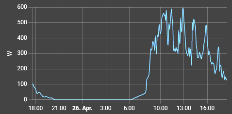 Bei so Wetter wie heute ist das sehr durchwachsen. Am 02.04. habe ich zB nur 0,79kWh erzeugt, am 05.04. dafür 4,65kWh