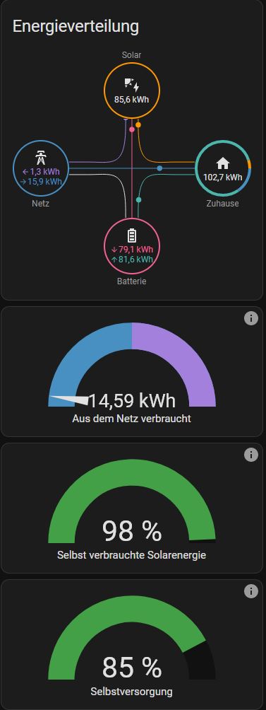 Nicht den Denkfehler machen, dass der Akku einen durch die Nacht oder sonstwas bringen MUSS. Das ist keine Inselanlage, bei der dann plötzlich das Licht ausgeht. Bei diesen Anlagen dient der Speicher einzig und allein dazu, den Eigenverbrauch der möglichen PV-Energie zu erhöhen. Wenn der Akku leer ist, dann kommt der Strom weiterhin aus dem Netz.