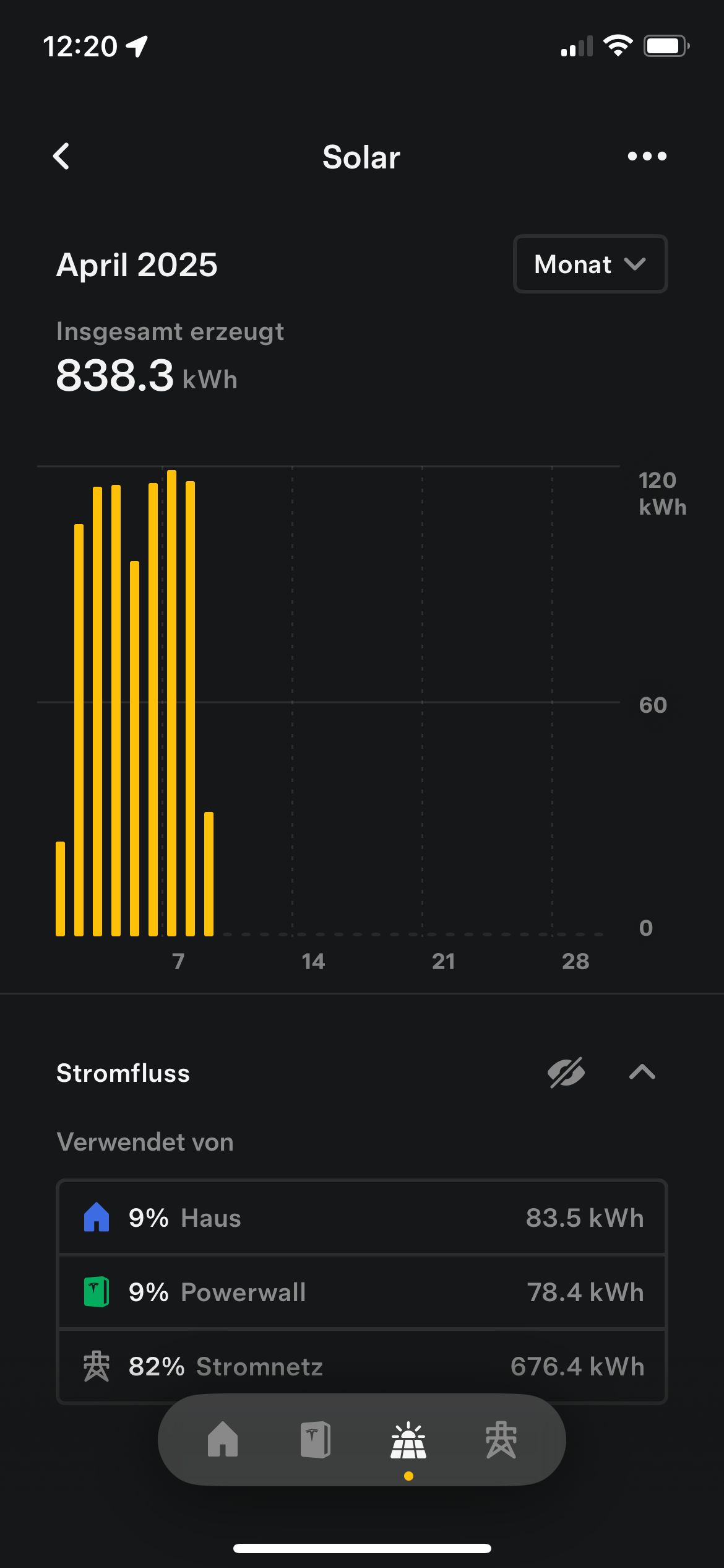 Jetzt schon in den letzten Tagen läuft das 1,6 KW Akku oft auf 80- 100% und wir haben nicht einmal Sommer/ Hochsommer.