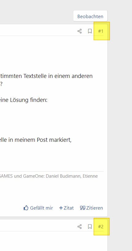 Wie kann ich hier im Forum innerhalb eines Threads einen Anker zu einer bestimmten Textstelle in einem anderen Post auf der gleichen Seite setzen, die dann auch noch farblich markiert wird ?