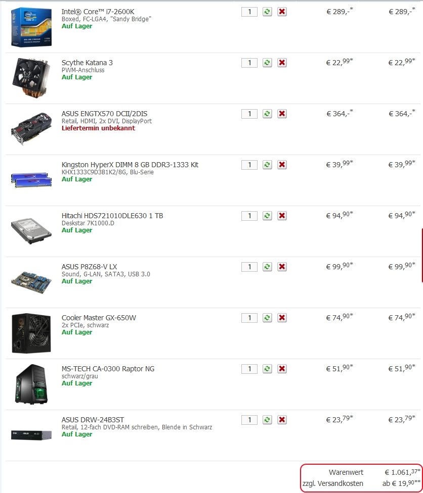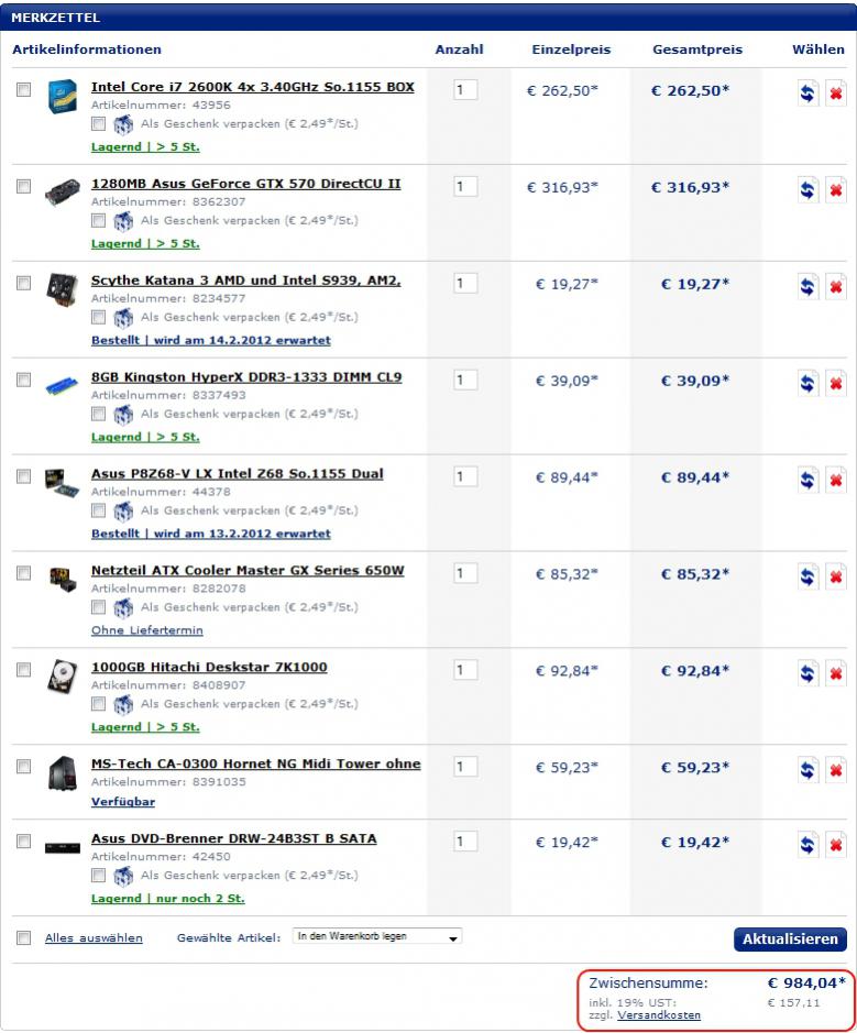ich brauch wieder mal einen PC und hab im Moment nicht wirklich die Zeit mir selbst einen zusammenzustellen. Ausserdem müssten die Komponenten in die Schweiz, wohin bei weitem nicht alle europäischen Teilehändler liefern. Also muss ein Komplettsystem her.