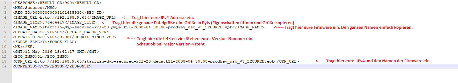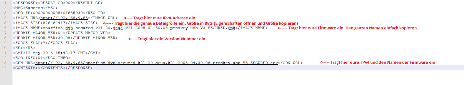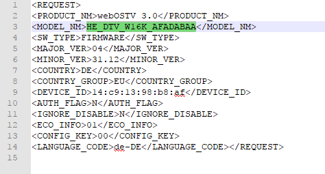 - Öffnet nun die von euch unbenannte Datei, in meinem Fall die HE_DTV_W16K_AFADABAA mit einem Editor. Ich empfehle an dieser Stelle Notepad, um es übersichtlicher zu haben. Ändert dort die Daten so, wie in meinem Fall. Speichert die Änderungen und schließt die Datei.