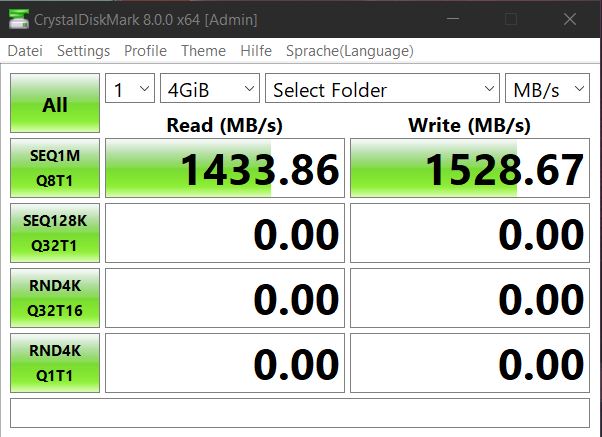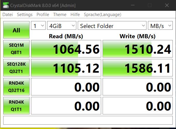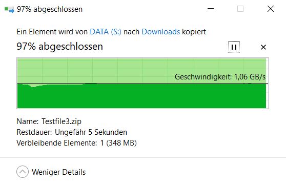 Zudem ist der Test auf dem Filesystem suboptimal. Filesysteme schaffen oft nicht substained die maximale Datenrate.