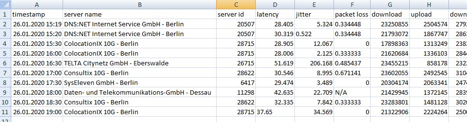 "date","time","server name","server id","latency","jitter","packet loss","download","upload","download bytes","upload bytes","share url"