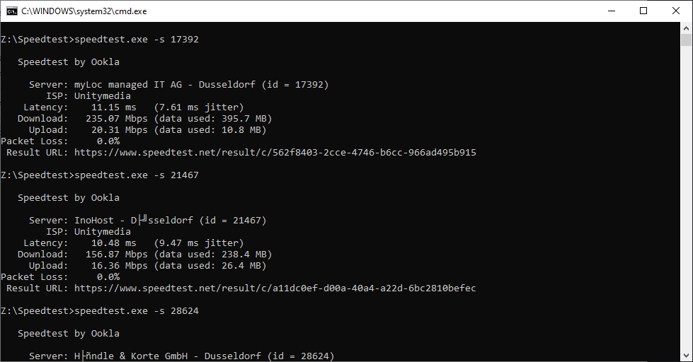 - "speedtest.exe -L" eingeben und Enter drücken (das "L" muss groß sein!)